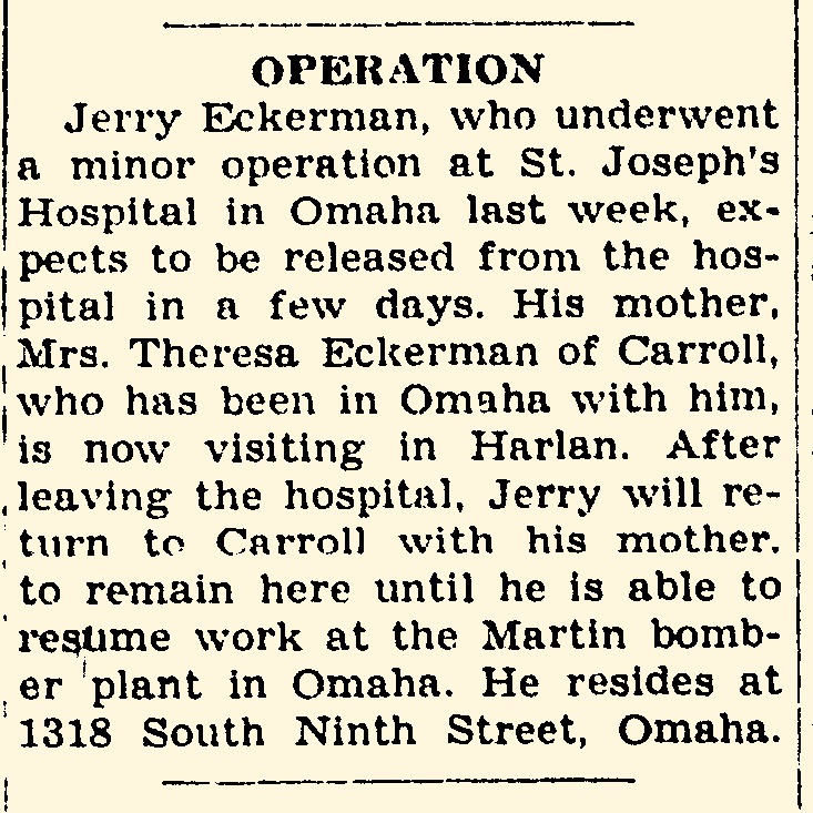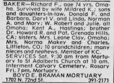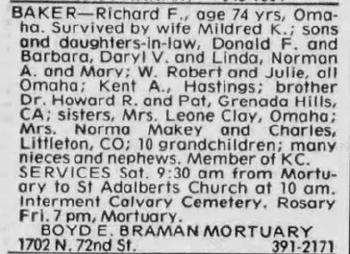 - [S373] U.S. Federal Census 1940 U.S. Federal Census, by Ancestry.com, Year: 1940; Census Place: Omaha, Douglas, Nebraska; Roll: m-t0627-02271; Page: 8B; Enumeration District: 94-67.
