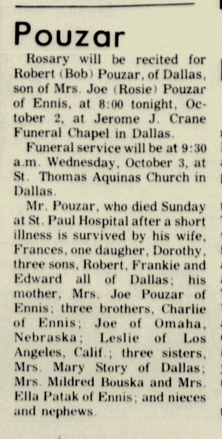 Child of Robert Jerry Pouzar and Frances Ann Krejci