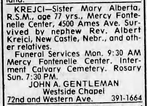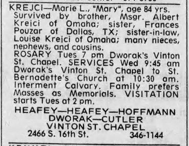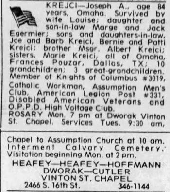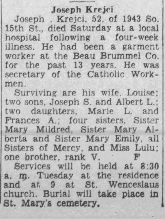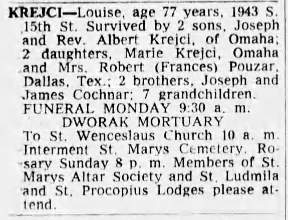 - Reverand Father Albert L. Krejci b. 22 Jun 1917, d. 17 Feb 2011