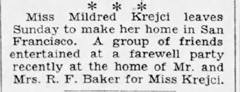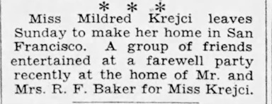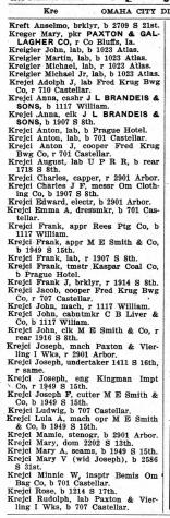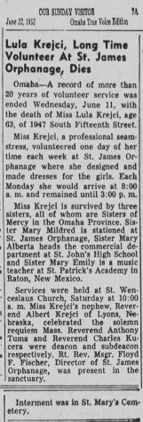 - Lulu A. Krejci b. 6 Sep 1888, d. 11 Jun 1952