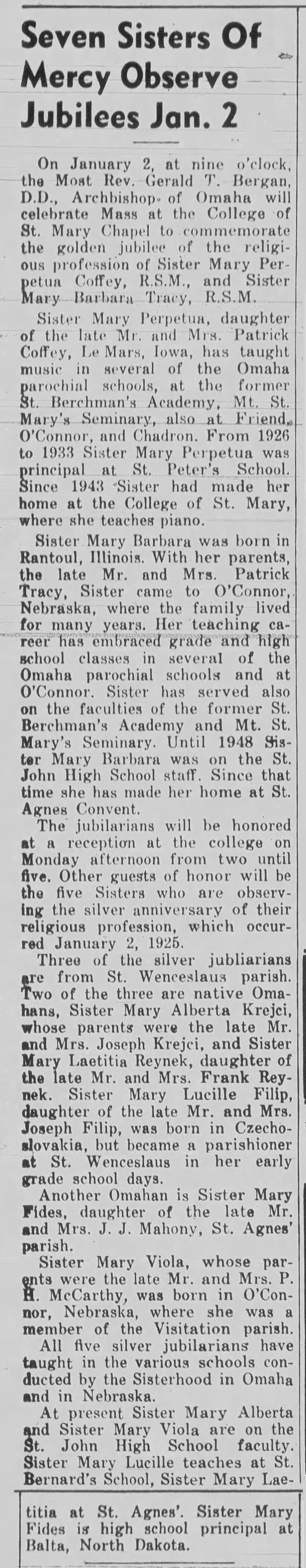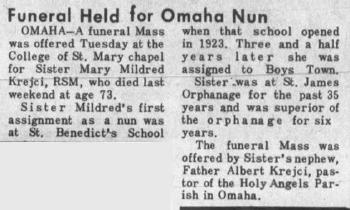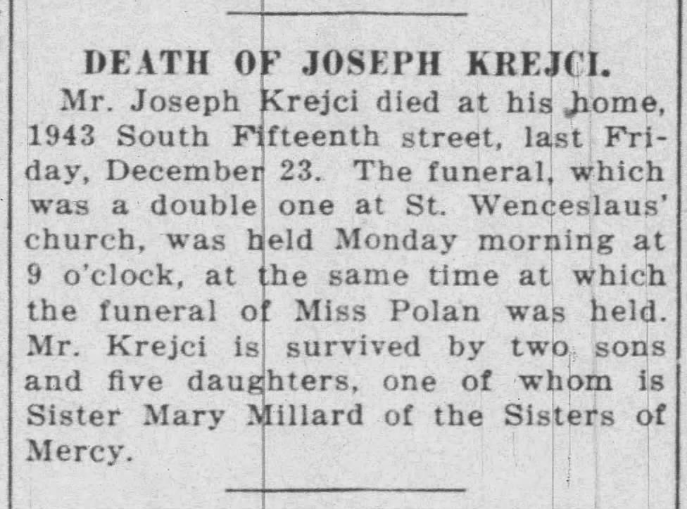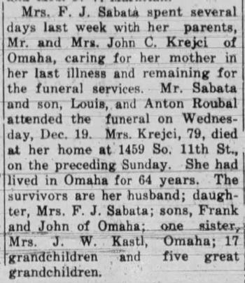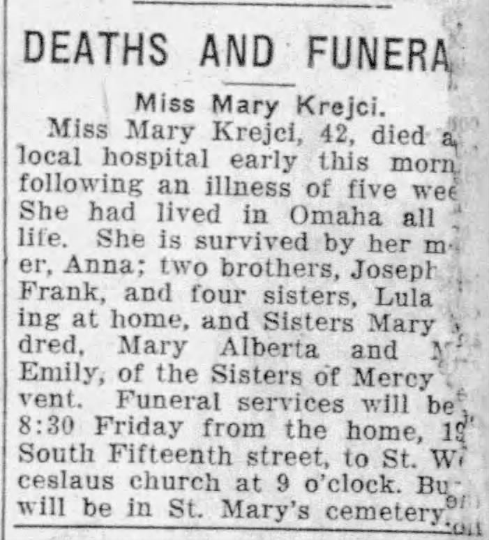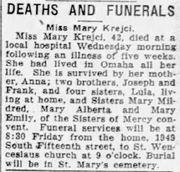 - Mary Barbara Krejci b. 15 Apr 1878, d. 22 Nov 1957