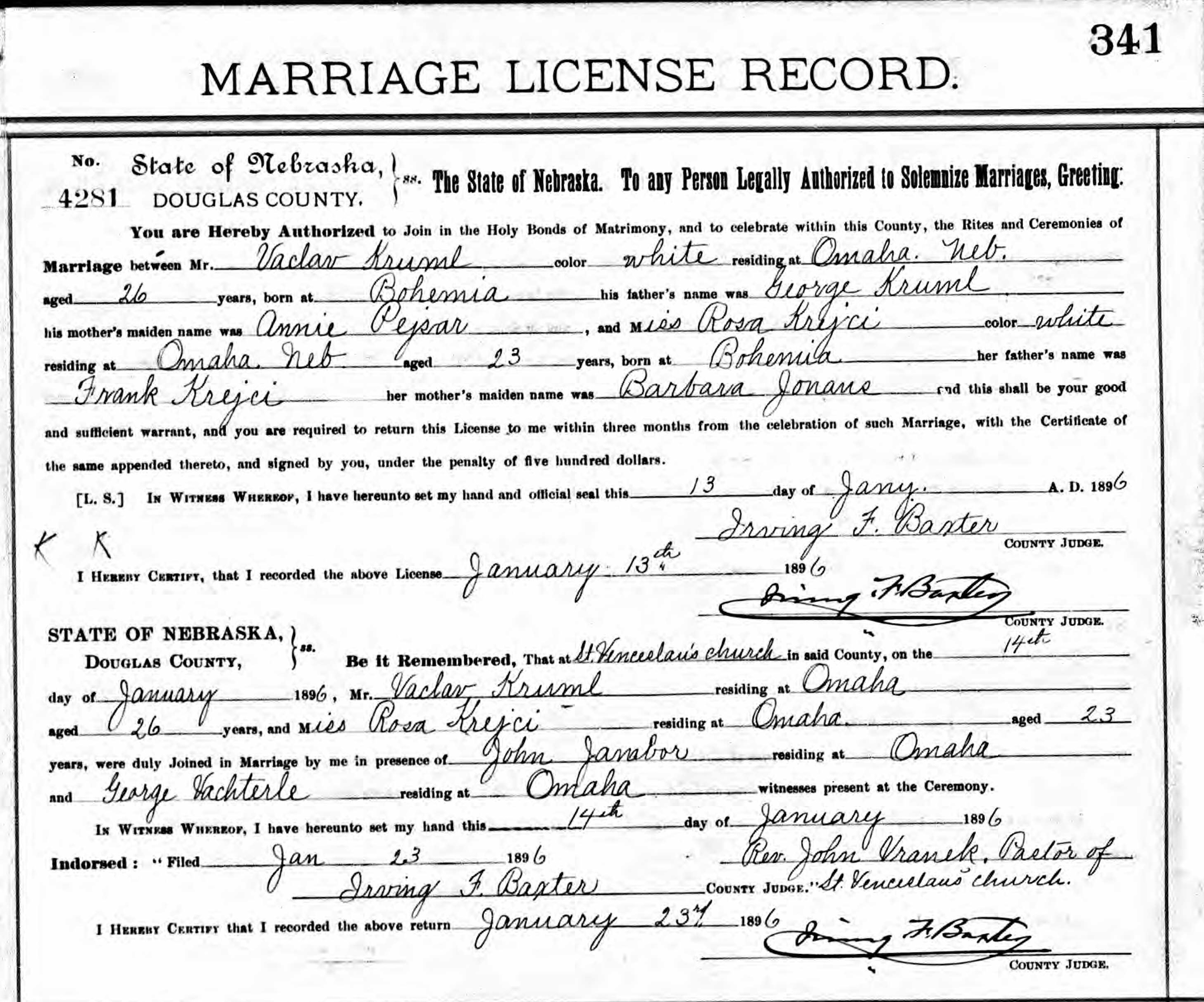 - Vaclav James Krejci+ b. 31 Mar 1866, d. 30 Jul 1949