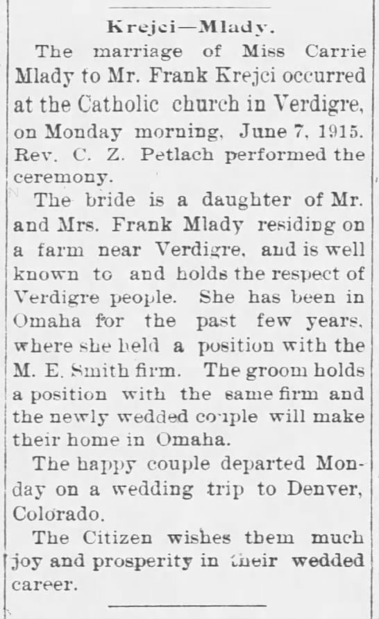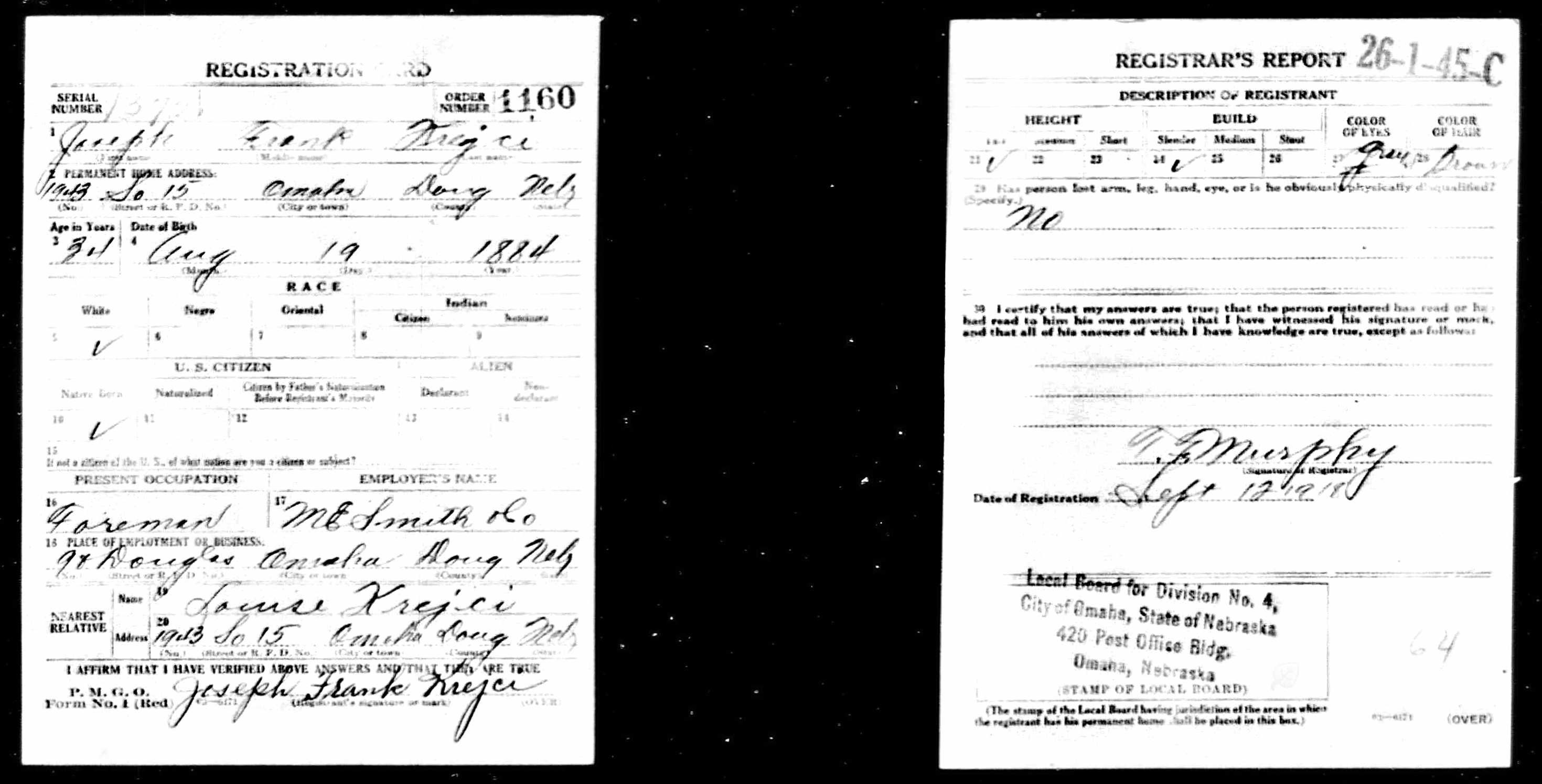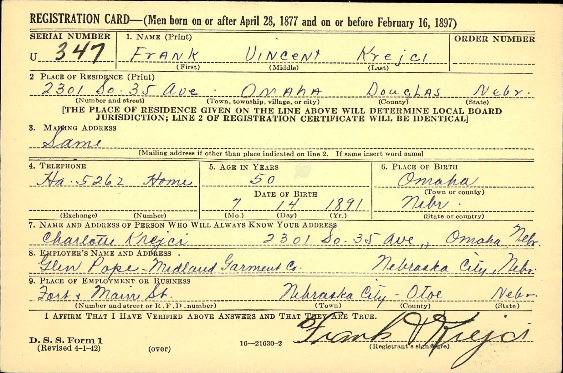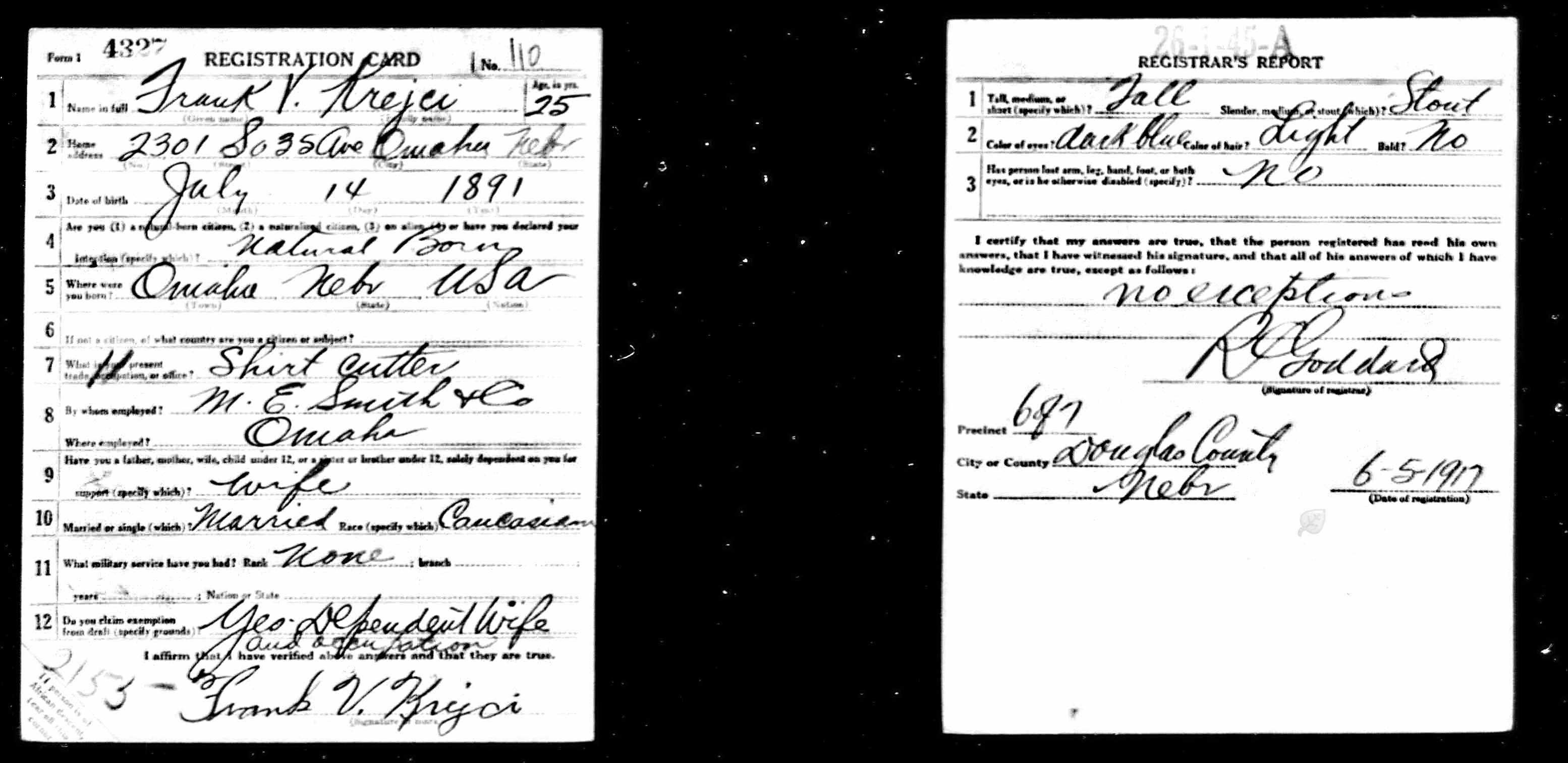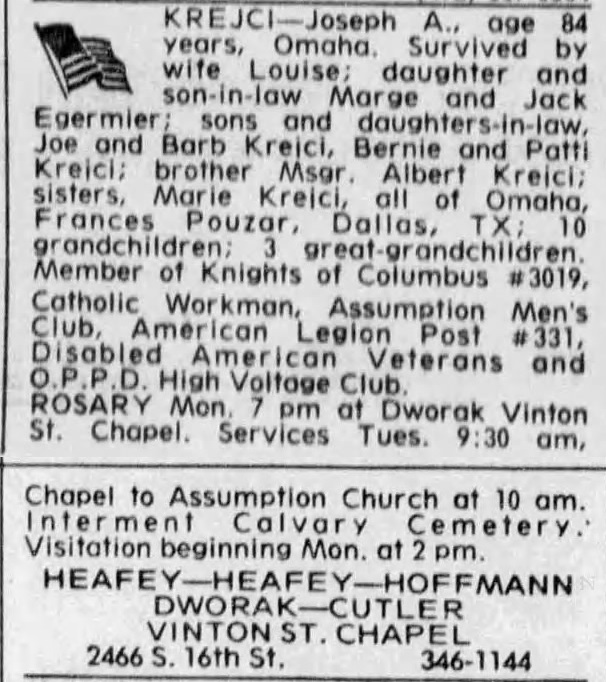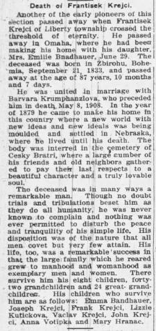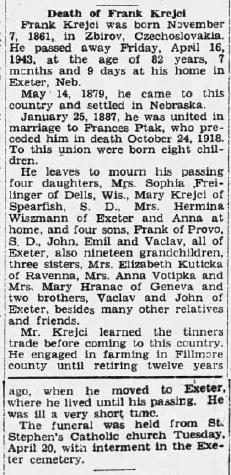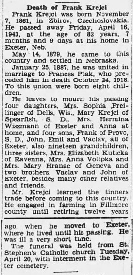 - Frank M. Krejci b. 6 Oct 1890, d. 19 Jul 1967