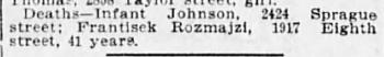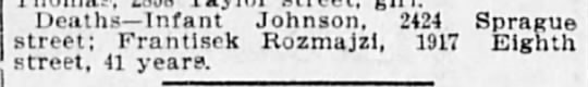 - Wenceslaus F. Rozmajzl+ b. 22 Sep 1889, d. 24 Apr 1980