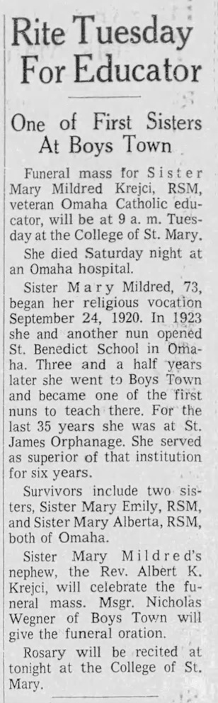 - Agnes M. Krejci b. 1903, d. 28 Nov 1972