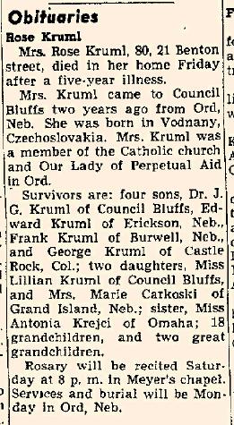 - Rosalie Mary Krejci+ b. 12 Sep 1871, d. Feb 1952