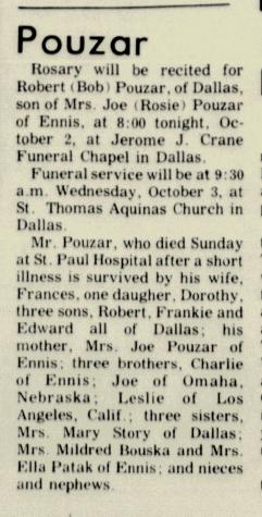 | Father* | Joseph Frank Pouzar b. 2 Jan 1883, d. 24 Feb 1955 |