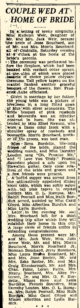 - Kathryn M. Weir b. 13 Jul 1913, d. 4 Aug 1983