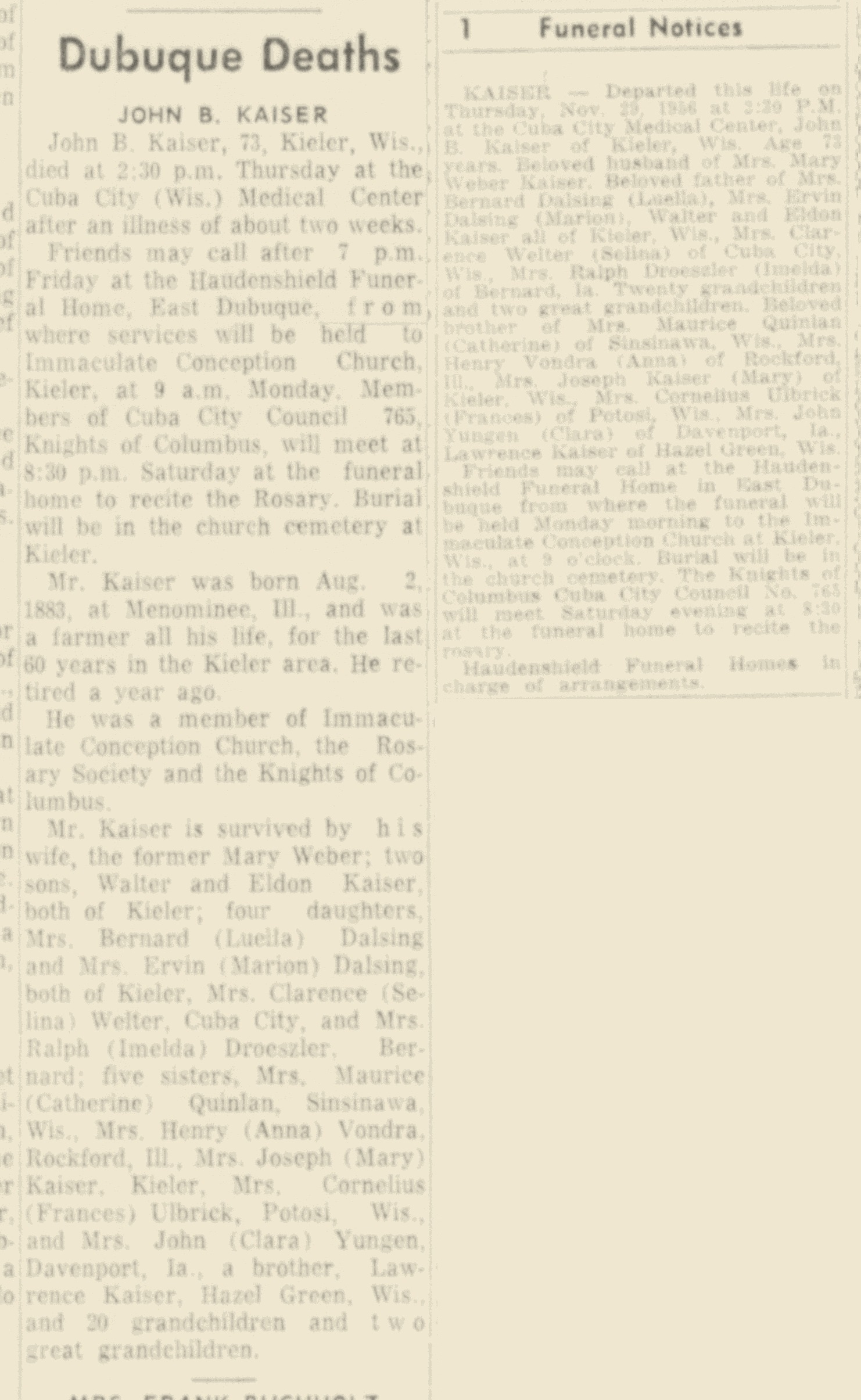- Eldon John Kaiser b. 5 Oct 1924, d. 23 Jun 1995