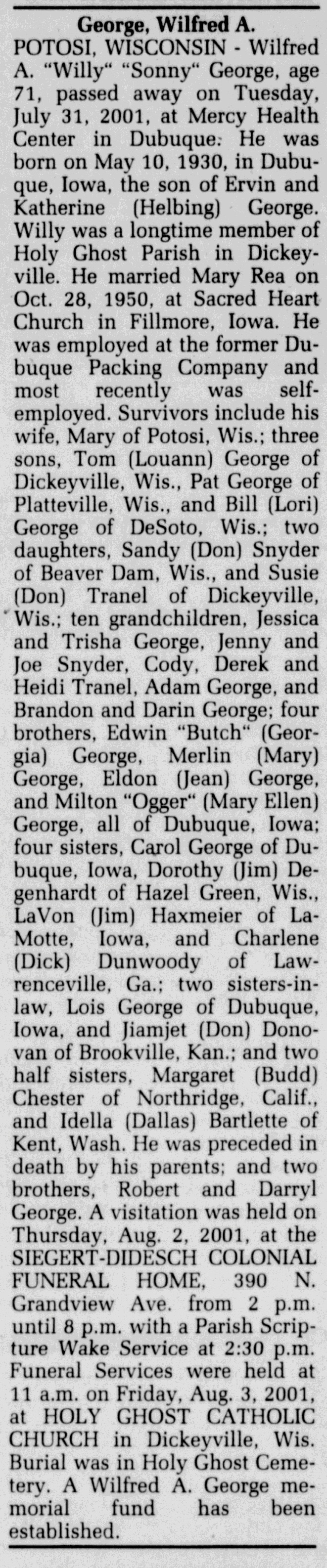 | Father* | Ervin George b. 17 Apr 1898, d. 12 Apr 1989 |