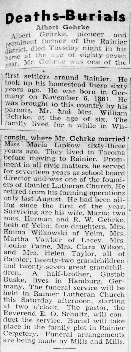 | Father* | Albert William Gehrke b. 6 Nov 1861, d. 15 Mar 1949 |