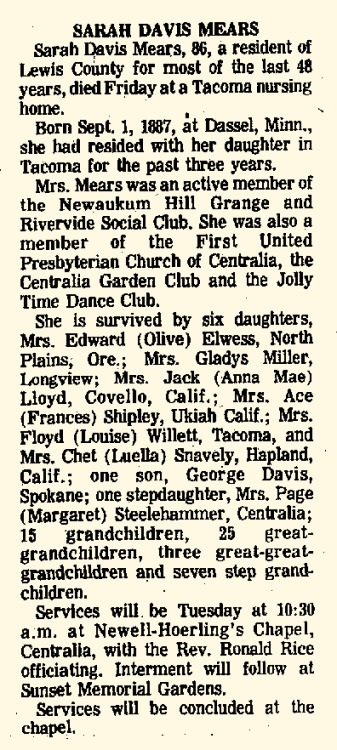 Father* | Robert Wallace Mears b. 10 Dec 1923, d. 1 Dec 1972 |