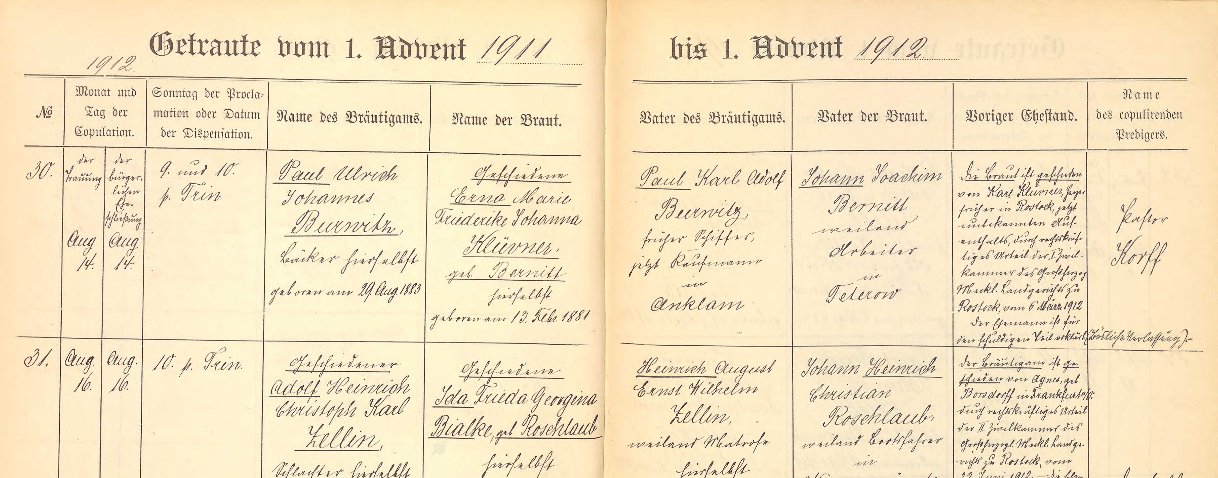 - Paul Ulrich Johannes Burwitz b. 29 Aug 1883