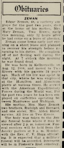 - Donald E. Zeman b. 18 Mar 1927, d. 6 Apr 2000