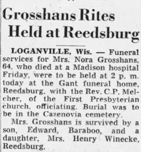 - [S179] Wisconsin Sauk County Cemetery Headstones Vol. 1, pg 36