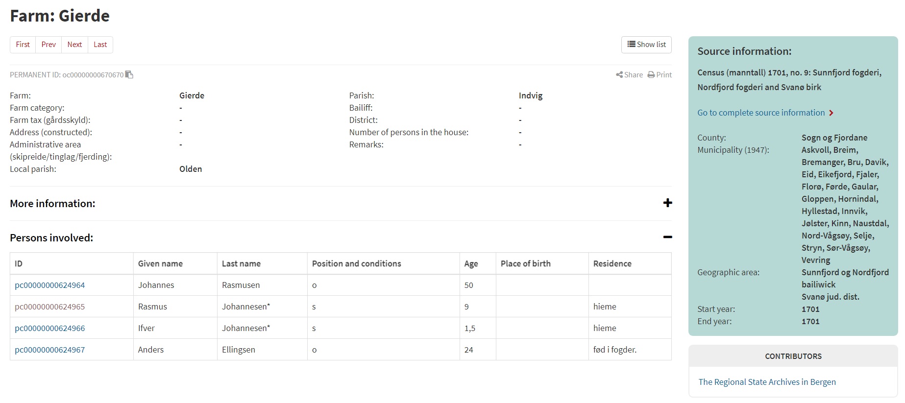 - [S375] Norwegian National Archives Digital Archives, by Norwegian government, RA, Manntallet 1701, nr. 9: Sunnfjord fogderi, Nordfjord fogderi og Svanø birk, 1701, s. 282-283.