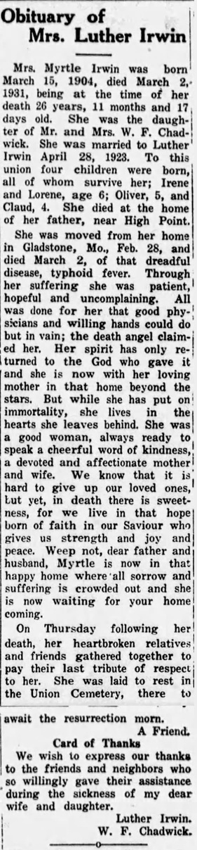 Children of Luther Irwin and Myrtle Chadwick
