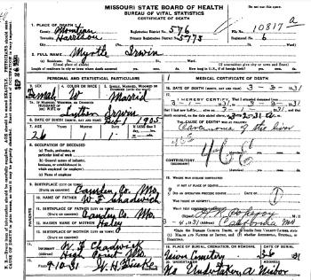 | Mother* | Myrtle Chadwick b. 1 Feb 1905, d. 3 Mar 1931 |