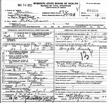- [S243] U.S. Federal Census 1920 U.S. Federal Census, by Ancestry.com, Year: 1920;Census Place: Jasper, Camden, Missouri; Roll T625_911; Page: 5B; Enumeration District: 36; Image: 110.