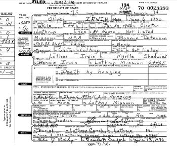- Oliver Irwin b. 30 Jan 1926, d. 6 Jun 1970
