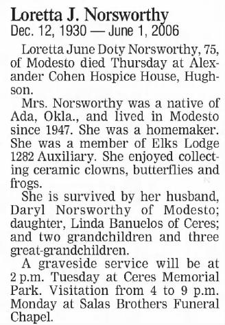 - Loretta June Doty+ b. 12 Dec 1930, d. 1 Jun 2006