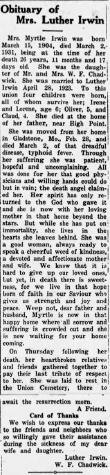 | Father* | Luther Irwin b. 7 May 1892, d. 1 Dec 1935 |