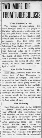 - Max John Mulcahy b. Feb 1886, d. 16 Feb 1910