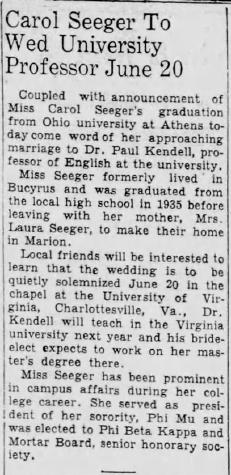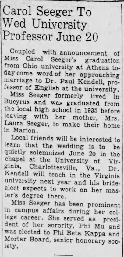 - Carol Louise Seeger b. 13 Sep 1917, d. 28 Jul 2012