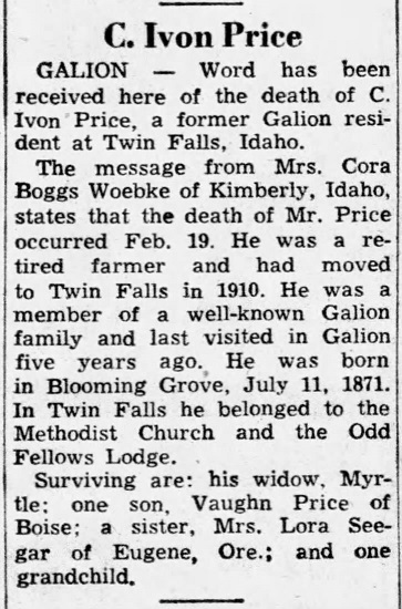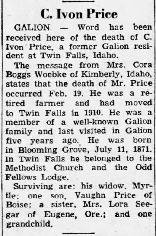 | Father* | Charles Ivon Price b. 11 Jul 1871, d. 19 Feb 1955 |