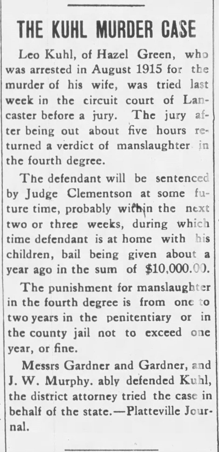 - Leonard H. Kuhl b. 19 Sep 1890, d. 29 Jan 1921