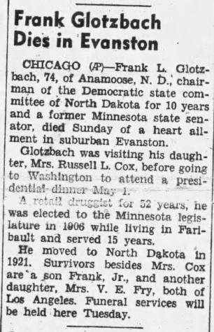- Frank Leo Glotzbach Jr. b. 13 Jul 1903, d. 1 May 1953