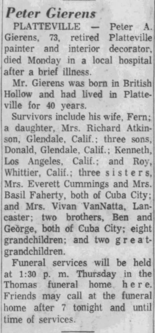 | Father* | Peter A. Gierens b. 1850, d. 1926 |