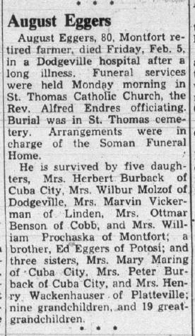 - William C. Eggers+ b. 26 Jan 1883, d. Dec 1941