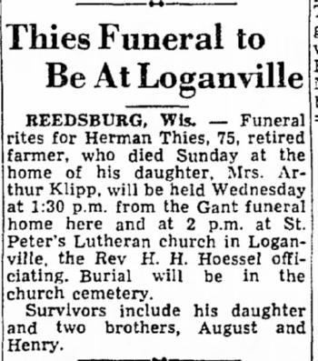 - Herman Thies+ b. 16 Jun 1875, d. 18 Jun 1950