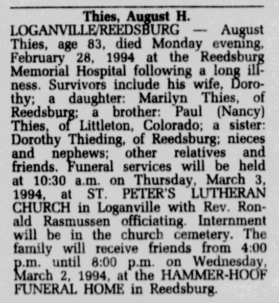 | Father | August Thies b. 25 Apr 1873, d. 1954 |
