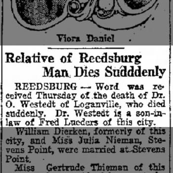 - Dr. Otto E. Westedt+ b. Apr 1879, d. 9 Jun 1921