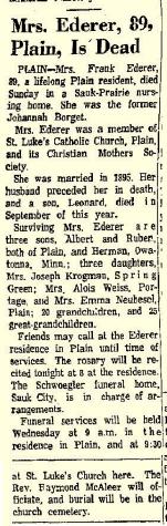 - Lucy Ederer b. 14 Jan 1901, d. 4 May 1916