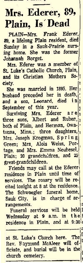 - Herman J. Ederer b. 1 May 1898, d. 6 Aug 1975