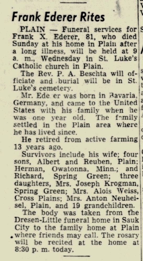 - Reuben John Ederer+ b. 3 Jul 1909, d. 8 Dec 1991