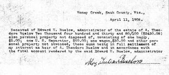 - [S244] U.S. Federal Census 1910 U.S. Federal Census, by Ancestry.com, Year: 1910; Census Place: Honey Creek, Sauk, Wisconsin; Roll: T624_1736; Page: 9B; Enumeration District: 0118; Image: 982; FHL Number: 1375749.