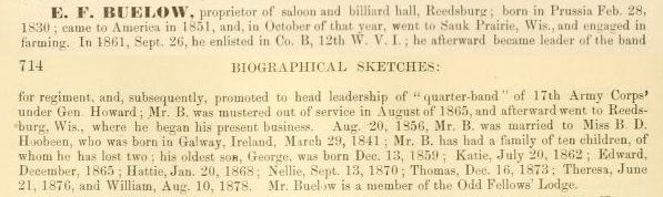 - George W. Buelow b. 13 Dec 1859, d. Mar 1933