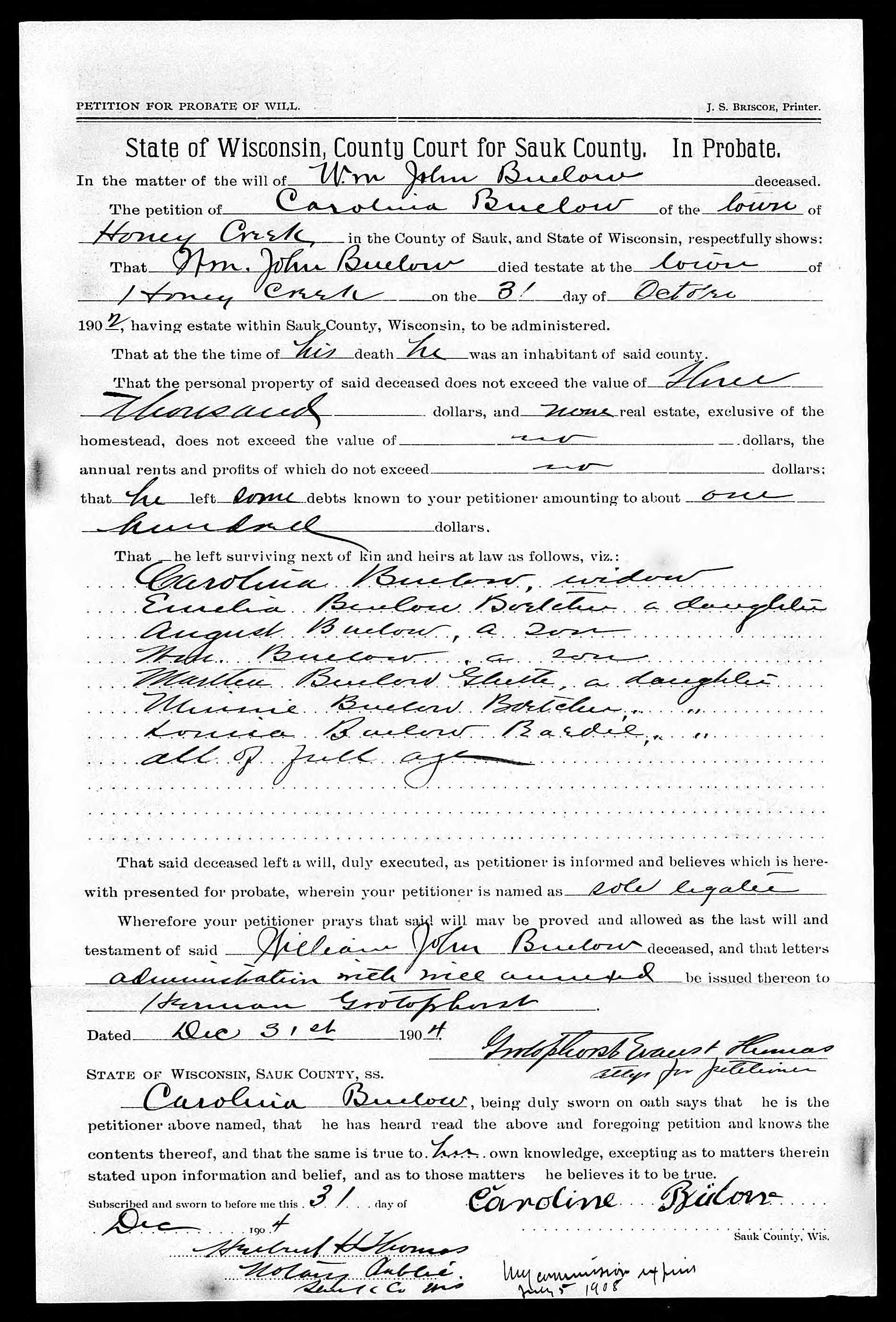 - William Buelow b. 10 Aug 1878, d. Sep 1917
