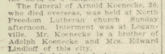 - Arnold Koenecke b. Apr 1895, d. Sep 1921