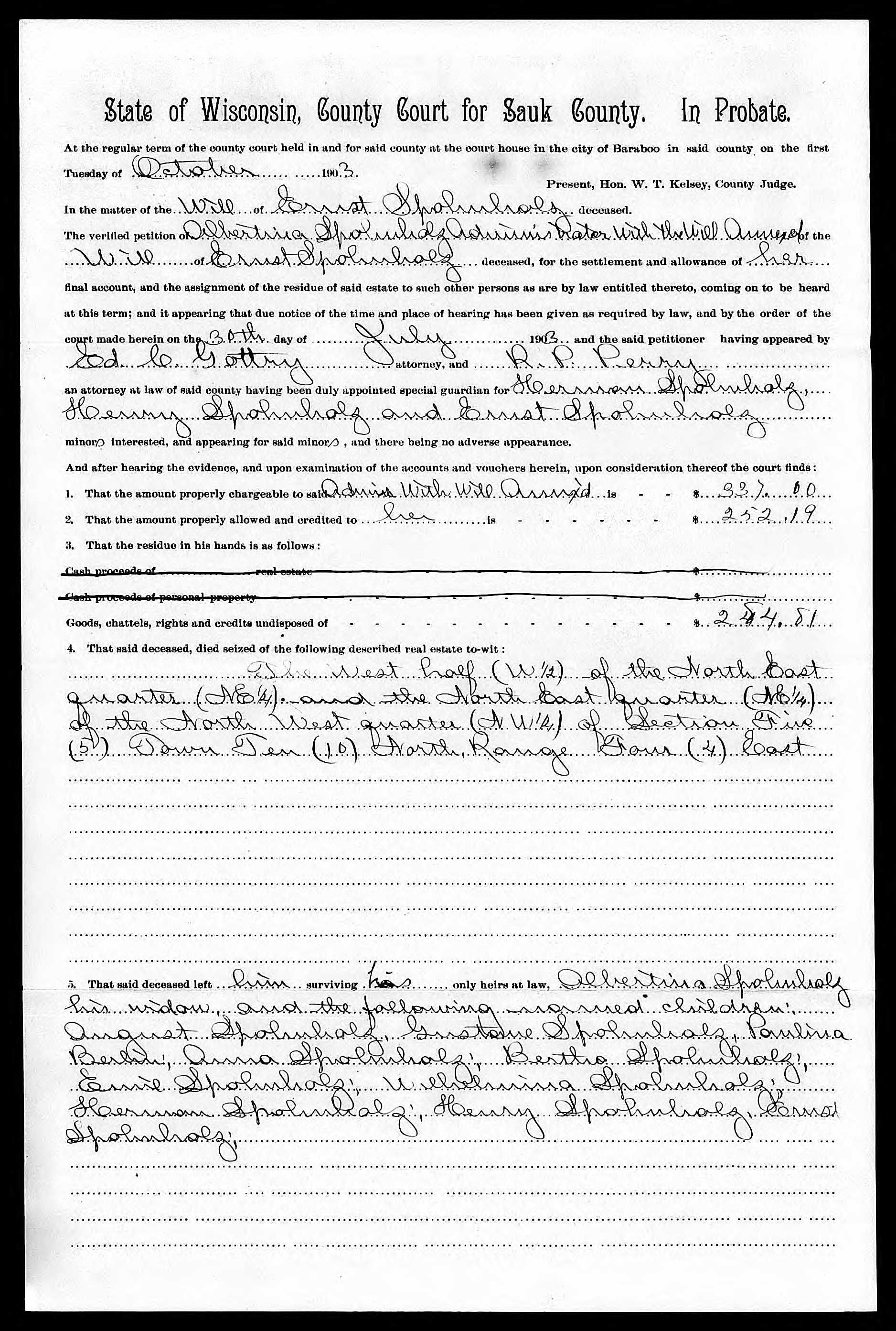 - August Friedrich Wilhelm Spohnholz b. 8 Feb 1868, d. 18 Jan 1946