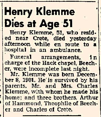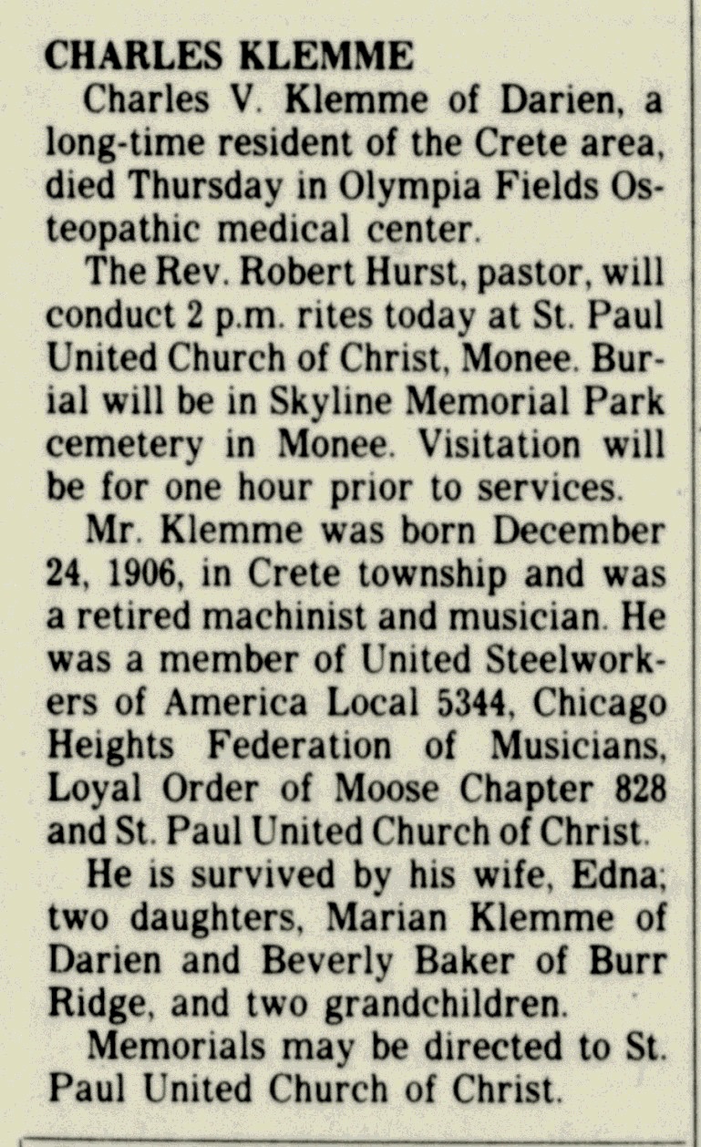 | Father* | Charles H. Klemme Sr. b. 30 Oct 1870, d. 25 Jul 1953 |