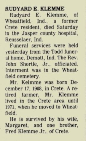 - Rudyard E. Klemme b. 17 Dec 1908, d. Dec 1978