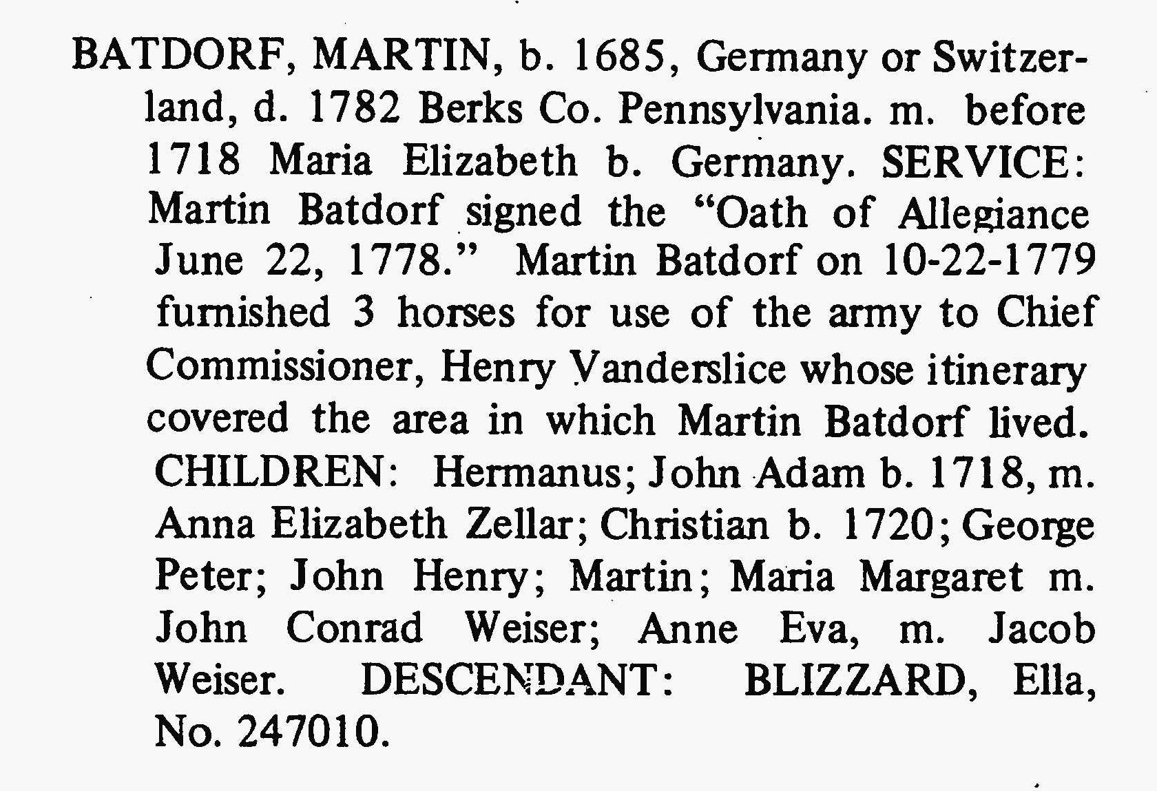 - Martin Batdorf b. 1734