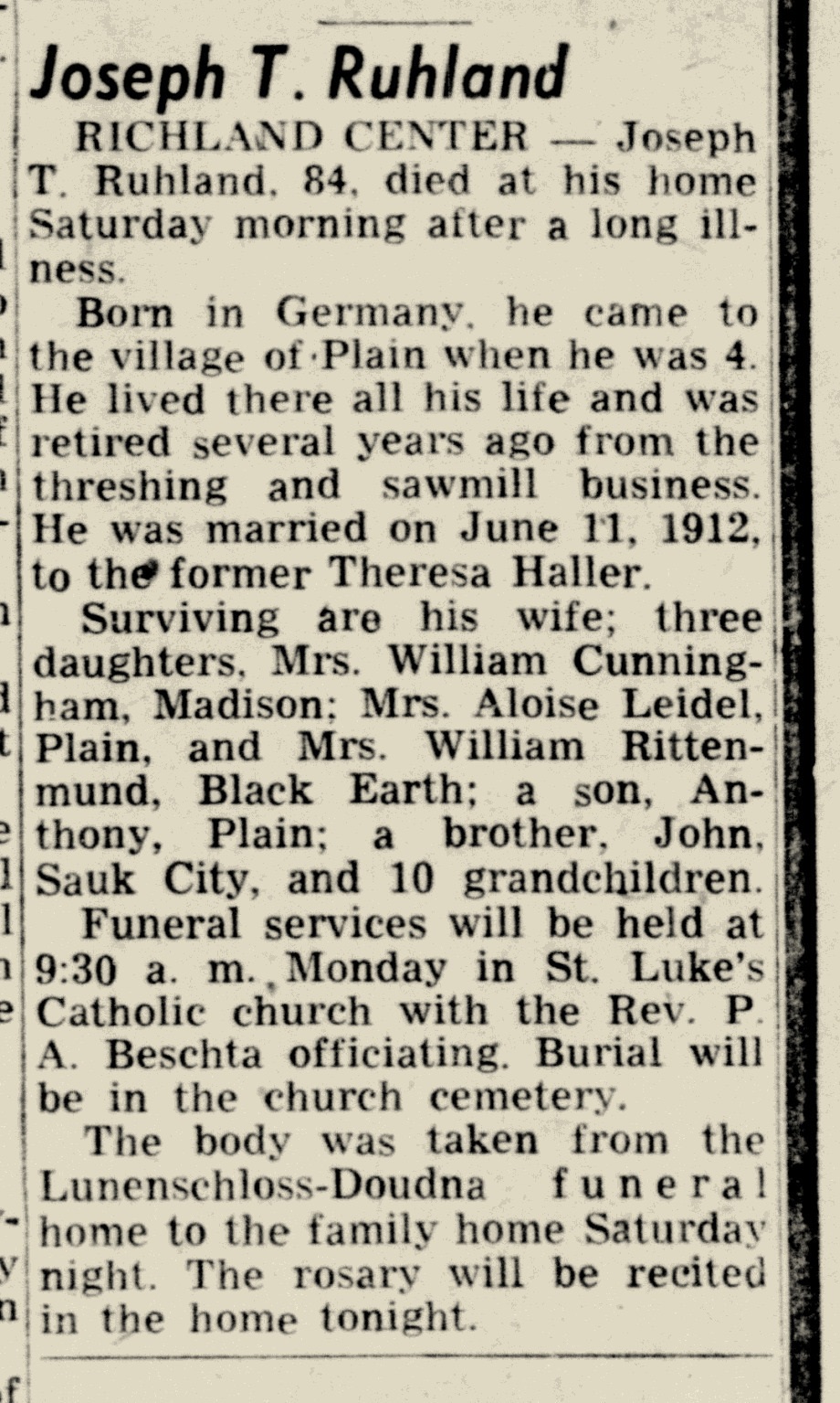 | Father* | John Ruland b. May 1869, d. 1955 |