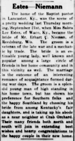 Children of Sabra Lee Estes and Erhart Charles Niemann