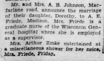 - [S373] U.S. Federal Census 1940 U.S. Federal Census, by Ancestry.com, Year: 1940; Census Place: Madison, Dane, Wisconsin; Roll: T627_4470; Page: 12B; Enumeration District: 13-68.